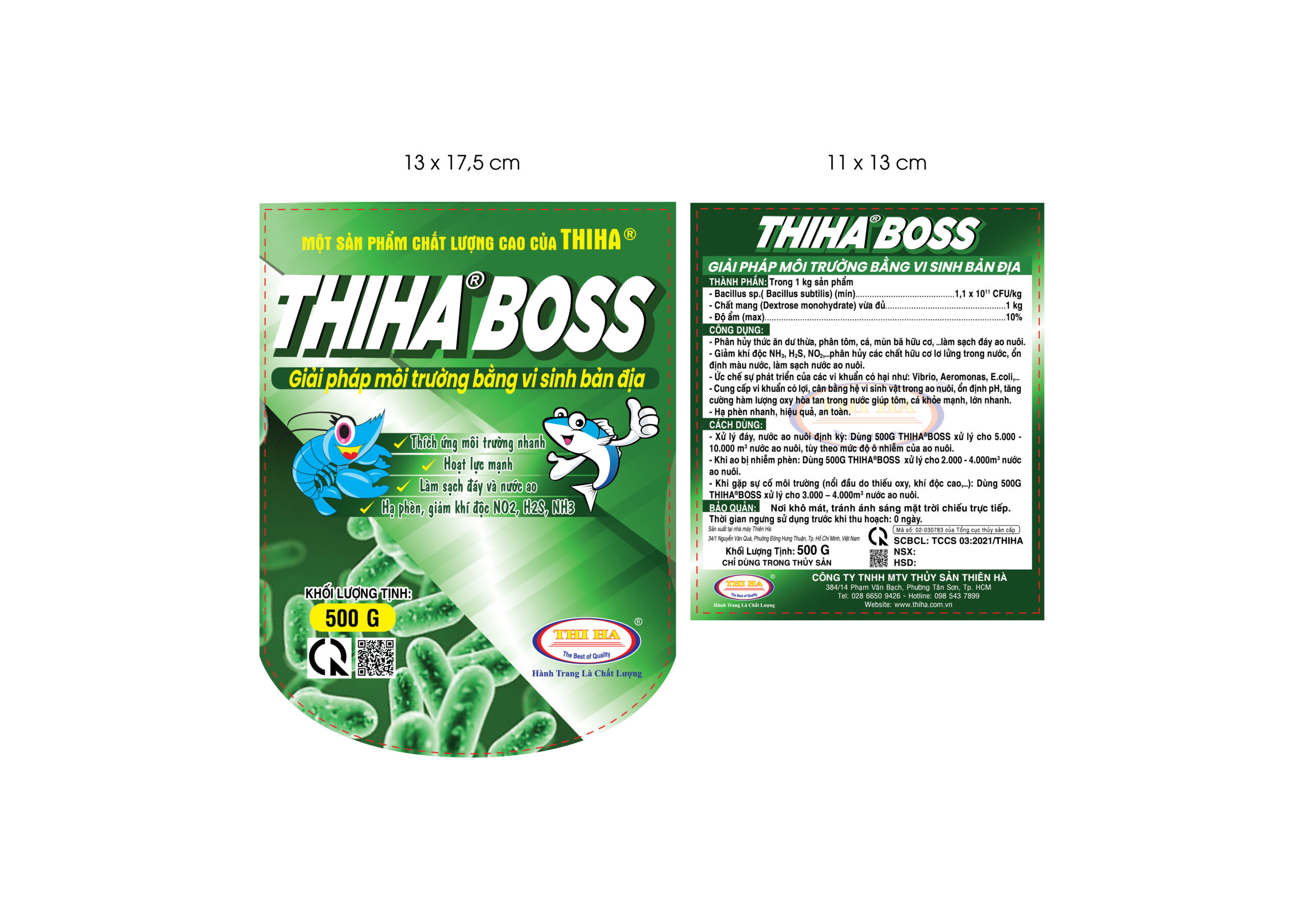 - Xử lý đáy, nước ao nuôi định kỳ: Dùng 500g THIHA®BOSS xử lý cho 5.000-10.000 m3 nước ao nuôi, tùy theo mức độ ô nhiễm của ao nuôi.
